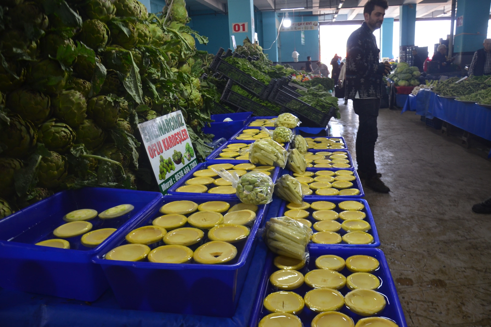 Yalova’nın yerli ürünü olan enginar, taze bir şekilde Yalova Kapalı Pazaryeri tezgahlarında yerini alıyor. Adet fiyatı 20 TL olan enginar, pazar esnafı tarafından ‘karaciğer dostu’ olarak satışa sunuluyor.