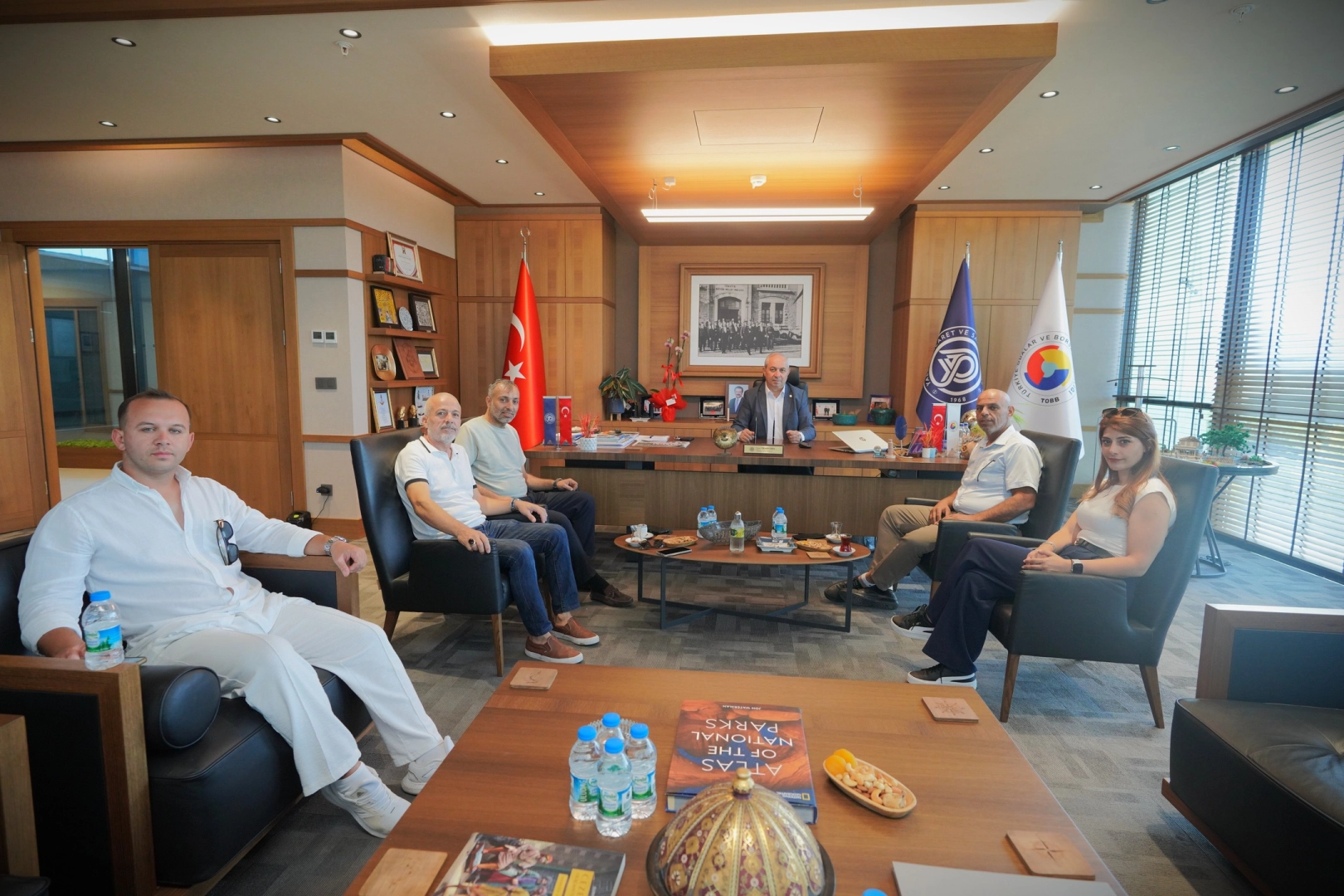 Sınırlı Sorumlu Altınova Servis İşletmecileri Motorlu Taşıyıcılar Kooperatifi Başkanı Mustafa Karadağ ile 2.Başkan Mustafa Kaya Yönetim Kurulu Üyeleri Rabia Uzuner, Fatih Yanık ve Gürkan Esen, YTSO Yönetim Kurulu Başkanı Cemil Demiryürek’i makamında ziyaret etti. Kooperatife yeni seçilen heyet, tanışma amacıyla gerçekleştirilen ziyarette kooperatifin çalışmaları ve faaliyetleri hakkında bilgi paylaştı. Ziyarette taşımacılık sektöründe yaşanan güncel gelişmelerin yanı sıra yerel düzeyde hizmet kalitesinin artırılması için atılabilecek adımlar da ele alındı.