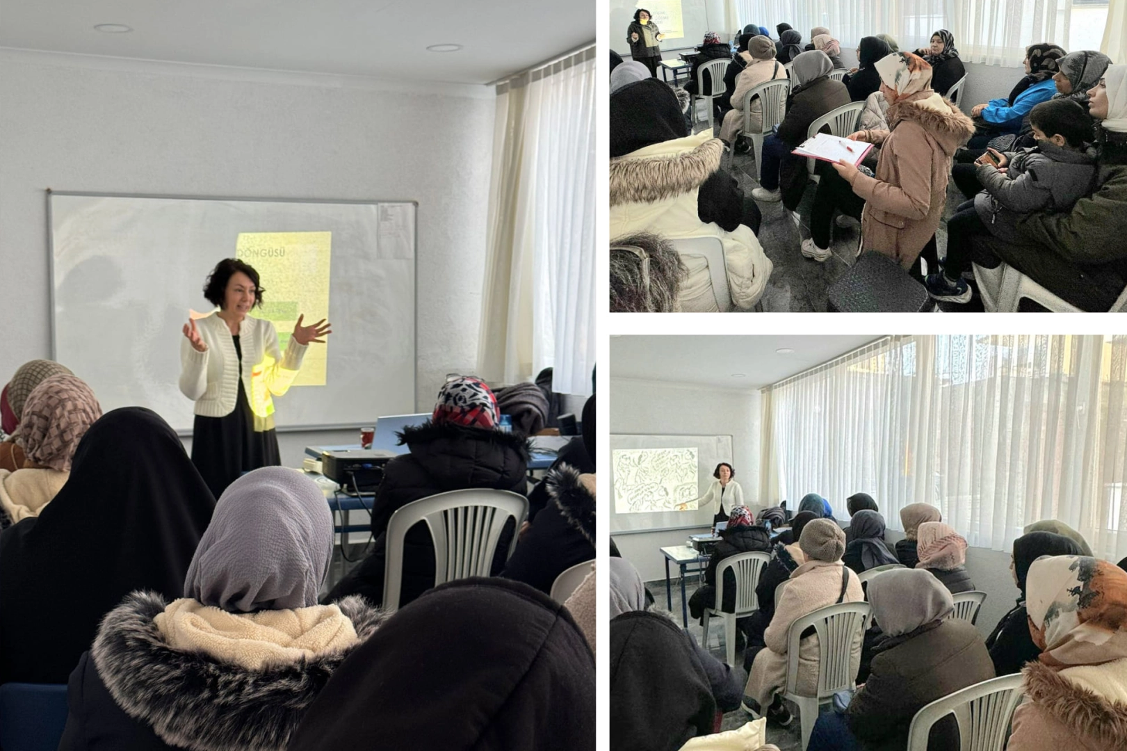 Sosyal Hizmet Uzmanı Selva Şengül tarafından gerçekleştirilen eğitimde, ailede iletişim becerilerini artırmaya yönelik ailenin gereksinimleri, iletişim engelleri, aile içi iletişim kopukluğunun nedenleri, aile içi iletişimsizlik ve çözüm yolları, empati ve çatışma çözme yöntemleri gibi konular ele alındı.