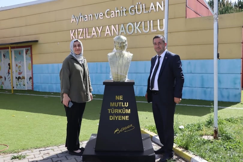 Bu doğrultuda, Ayhan ve Cahit Gülan Anaokulu'ndan gelen talep üzerine okul bahçesine bir Atatürk büstü kazandırılmasından duyduğu onuru dile getirdi. Başkan Canbay, "Eğitim kurumlarımızın yanında olmaya devam edeceğiz" şeklinde konuştu.