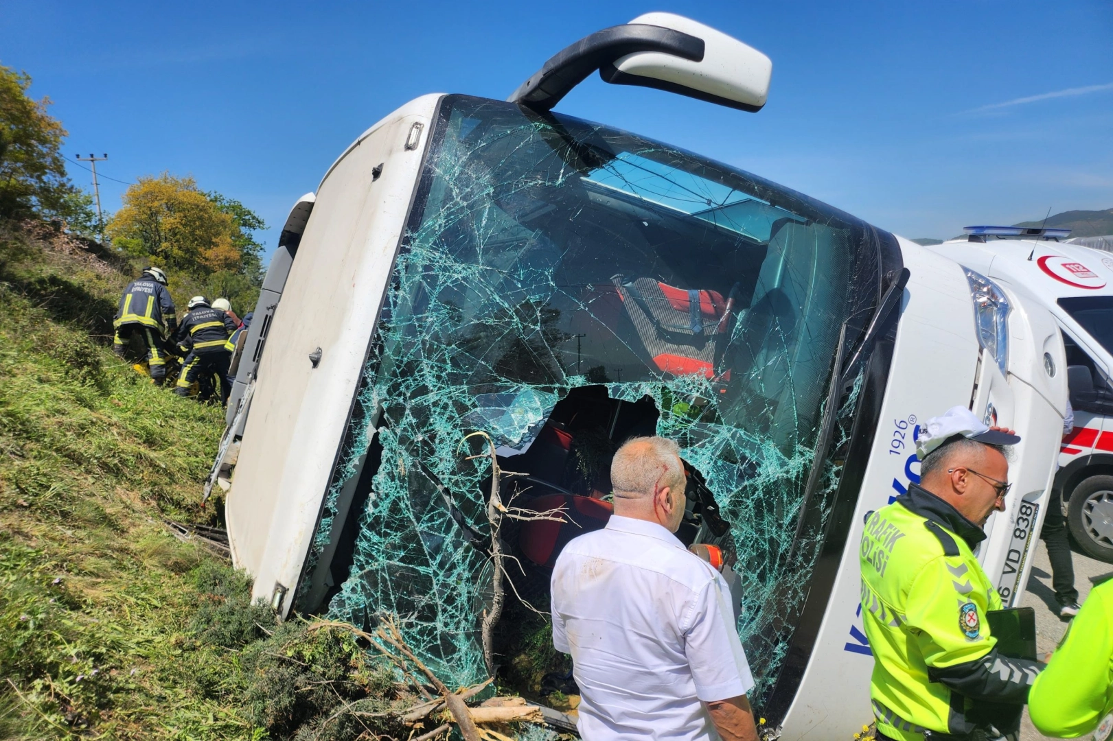 Devrilen yolcu otobüsündeki çok sayıda kişi yaralandı. Kazayı gören diğer sürücüler 112 Acil Çağrı Merkezine ihbarda bulundu.