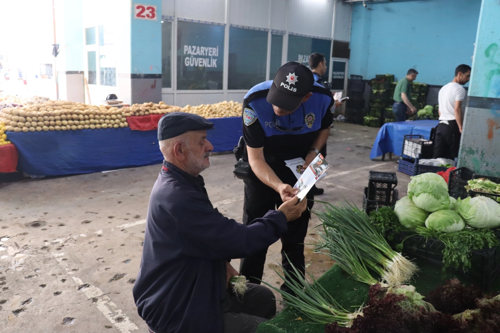 Toplum Destekli Polislik Şube Müdürlüğü ekipleri, Süleymanbey Mahallesi'nde bulunan kapalı semt pazarında esnaflara ve alışveriş yapan vatandaşlara çanta ve cüzdan hırsızlığına karşı alınması gereken tedbirler konusunda bilgilendirme yaptı. Polisler, vatandaşlara kalabalık ortamlarda çantalarına ve cüzdanlarına dikkat etmeleri, kimlik ve para gibi değerli eşyalarını üzerlerinde taşımamaları ve çantalarını her zaman yanlarında bulundurmaları gibi tavsiyelerde bulundu.