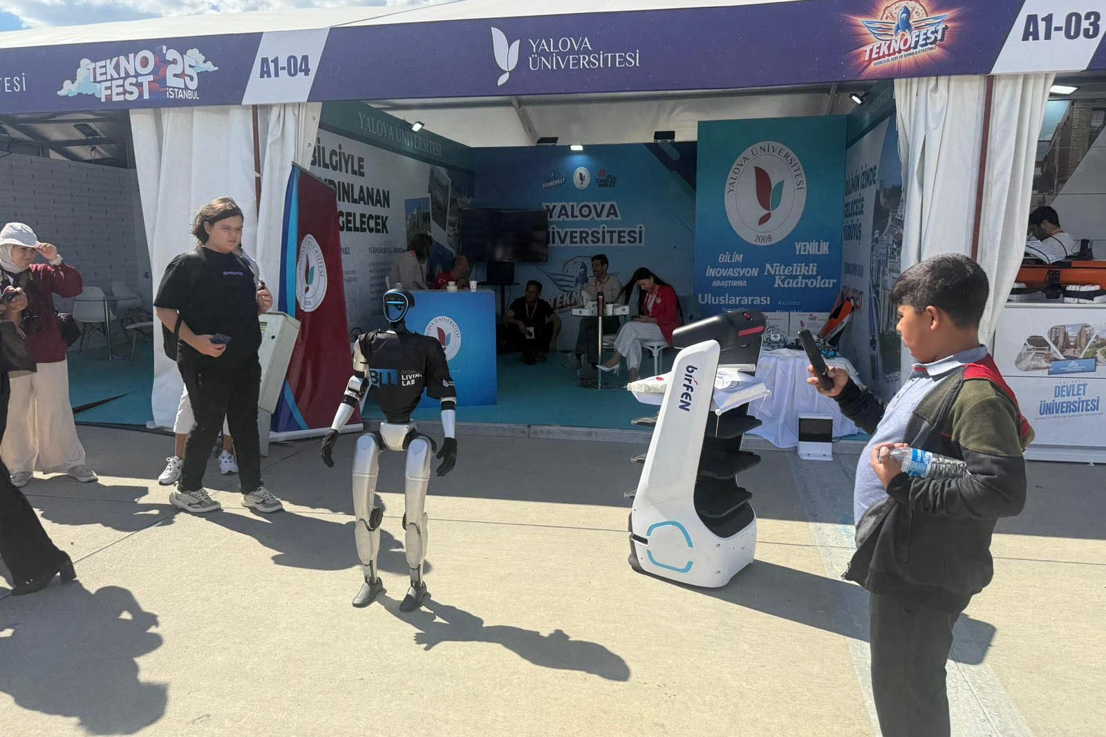 Yalova Üniversitesi’nin “Bilim ve Geleceğin Yürüyüşü” sloganıyla TEKNOFEST 2025’te yer alan standında sergilenen otonom servis robotu, ziyaretçilerden büyük ilgi görüyor. Yalova Üniversitesi’nin standını ziyaret eden dikkat çekici konuklardan biri ise insansı otonom robot Başak oldu. Robotlar arası bu karşılaşma, ziyaretçilerin ilgisini çeken hoş bir detay olarak öne çıktı.