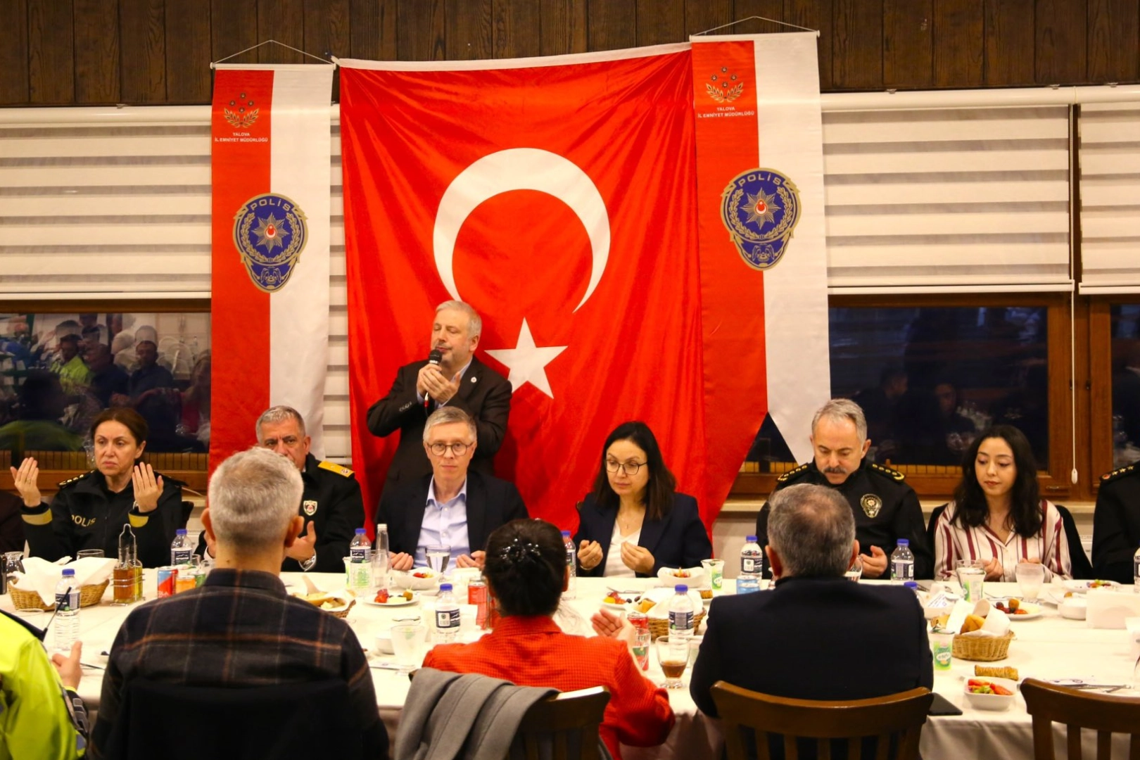 . Yalova Emniyet Müdürlüğü’nden yapılan açıklamada “Bugün iftar soframızı Yalova Valisi Dr. Hülya Kaya, Eşi Prof. Dr. Cemil Kaya, Garnizon Komutanı Mehmet Tahir Göncüoğlu, Yalova Cumhuriyet Başsavcısı Duygu Bayar Öksüz, Adalet Komisyon ve Ağır Ceza Mahkemesi Başkanı Abdulkadir Ungan, İl Jandarma Komutanı Ercan Altın, İl Emniyet Müdürü Ümit Bitirik, Sahil Güvenlik TCSG-17 Komutanı Eren Deneri ve İl Müftüsü İlyas Yılmaztürk’ün katılımıyla Trafik Denetleme Şube Müdürlüğü personelimizle birlikte paylaştık. Ramazan’ın bereketini birlikte yaşarken aynı sofranın etrafında sadece yemeğimizi değil, güzel anları, içten sohbetleri, samimiyeti ve birlikte olmanın huzurunu bölüştük” denildi.
