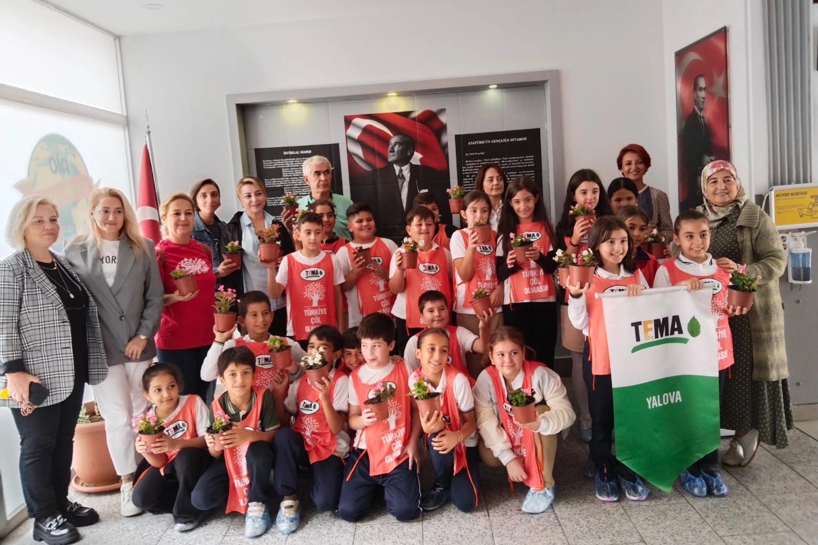 Yalova Belediyesi Temizlik İşleri Müdürlüğü Park Bahçeler Birimi, TEMA Vakfı ile ortak bir çalışma gerçekleştirerek Atatürk İlkokulu bahçesinde çiçek dikim etkinliği düzenledi. Etkinlikte, öğrencilerle birlikte çeşitli çiçekler toprakla buluşturuldu. Öğrencilerin büyük bir heyecanla katıldığı etkinlik, aynı zamanda eğitim amaçlı olarak doğanın korunması ve yeşil alanların önemi hakkında bilgilerle desteklendi.