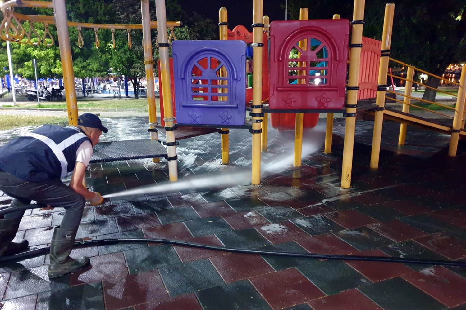 Yalova Belediyesi’nin Temizlik İşleri Müdürlüğü ekipleri, gün boyu yoğun kullanılan alanlarda gece boyunca titizlikle çalışarak Yalovalılara daha temiz, sağlıklı ve ferah bir kent ortamı sunuyor. Temizlik ekipleri geçtiğimiz akşam, çalışmalarına Yalova’nın en işlek noktalarından biri olan Gazipaşa Caddesi'nden başladı. Ardından PTT bölgesi, Cumhuriyet Meydanı, Barış Manço Amfi Tiyatro bölgesi, minibüs garajı, oyun parkları ve çevresi başta olmak üzere kentin farklı noktalarında detaylı zemin yıkama işlemleri gerçekleştirdi.