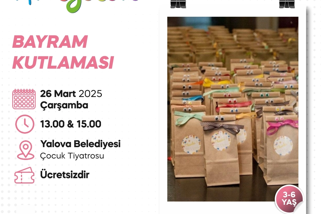 Ücretsiz olarak düzenlenen etkinlik, 3-6 yaş arası çocuklara yönelik olup saat 13.00 ve 15.00 olmak üzere iki farklı oturumda gerçekleşecek. Renkli atölye çalışmaları, eğlenceli aktiviteler ve sürpriz hediyelerle çocuklara unutulmaz bir bayram coşkusu yaşatılması hedefleniyor. Veliler, kayıt ve detaylı bilgi için 0226 813 50 90 numaralı telefon üzerinden başvuru yapabilecekler. Bayram sevincini paylaşmak isteyen tüm minikler ve aileleri etkinliğe davet edildi.