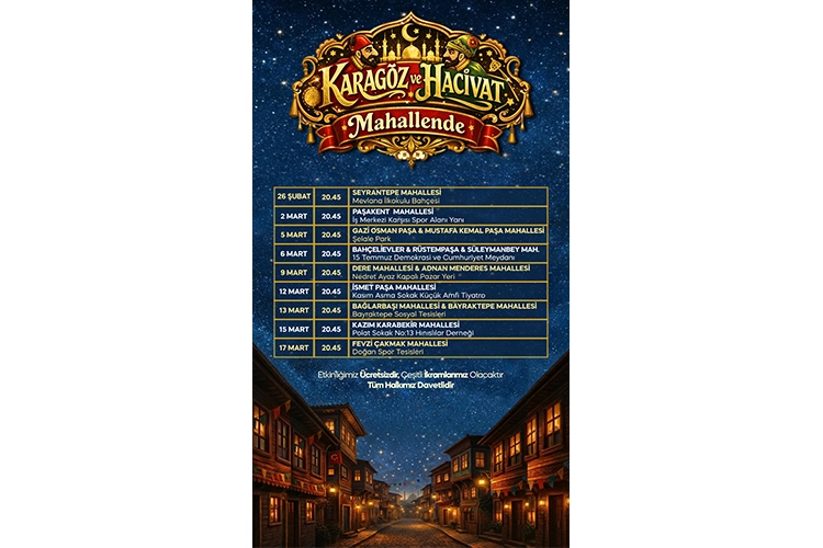 Yalova Belediye Başkanı Mehmet Gürel’in öncülüğünde düzenlenen etkinlikler, 26 Şubat’ta başlayacak ve 17 Mart’a kadar farklı mahallelerde devam edecek. Saat 20.45’te başlayacak gösterilerle özellikle çocuklar ve aileler, Ramazan akşamlarını keyifli ve nostaljik bir atmosferde geçirme imkânı bulacak. Etkinlik takvimi kapsamında 26 Şubat’ta Seyrantepe Mahallesi Mevlana İlkokulu Bahçesi, 2 Mart’ta Paşakent Mahallesi İş Merkezi Karşısı Spor Alanı yanı, 5 Mart’ta Gazi Osman Paşa & Mustafa Kemal Paşa Mahalleleri Şelale Park, 6 Mart’ta Bahçelievler, Rüstempaşa & Süleymanbey Mahalleleri 15 Temmuz Demokrasi ve Cumhuriyet Meydanı, 9 Mart’ta Dere & Adnan Menderes Mahalleleri Nedret Ayaz Kapalı Pazar Yeri, 12 Mart’ta İsmet Paşa Mahallesi Kasım Asma Sokak Küçük Amfi Tiyatro, 13 Mart’ta Bağlarbaşı & Bayraktepe Mahalleleri Bayraktepe Sosyal Tesisleri, 15 Mart’ta Kazım Karabekir Mahallesi Polat Sokak No:13 Hınıslılar Derneği, 17 Mart’ta Fevzi Çakmak Mahallesi Doğan Spor Tesisleri adreslerinde Karagöz ve Hacivat gösterileri sahnelenecek. Ücretsiz olarak gerçekleştirilecek etkinliklerde çeşitli ikramlar da vatandaşlara sunulacak. Yalova Belediyesi yetkilileri, Ramazanın birlik, beraberlik ve paylaşma ruhunu mahalle kültürüyle buluşturmayı amaçladıklarını belirterek, tüm Yalovalıları bu özel etkinliklere davet etti. “Karagöz ve Hacivat Mahallende” ile Ramazan akşamları, hem geleneksel kültürün yaşatıldığı hem de komşuluk bağlarının güçlendiği bir şenlik havasında geçecek.
