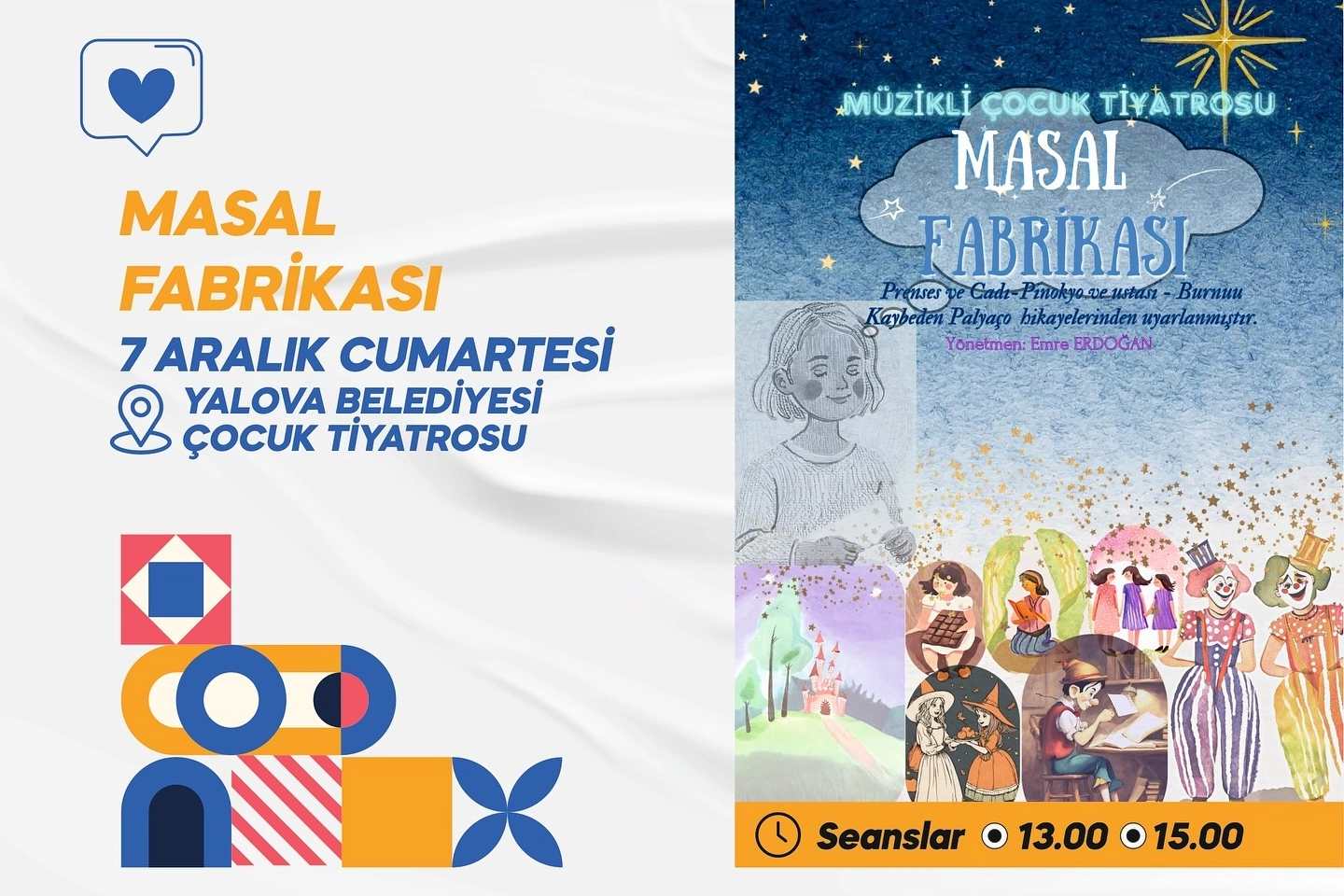 Yalova Belediyesi tiyatronun sosyal medya hesaplarında programın 7 Aralık Cumartesi gerçekleşeceğini duyurdu. Ayrıca hiçbir ücret ödemeden katılabilecek minikler için iki seans uygulanacak. Yalova Çocuk Tiyatrosu’nda gerçekleşecek etkinliğin ilk gösterimi 7 Aralık saat 13.00’da başlayacakken ikinci gösterim aynı gün saat 15.00’da izleyiciler ile buluşacak.