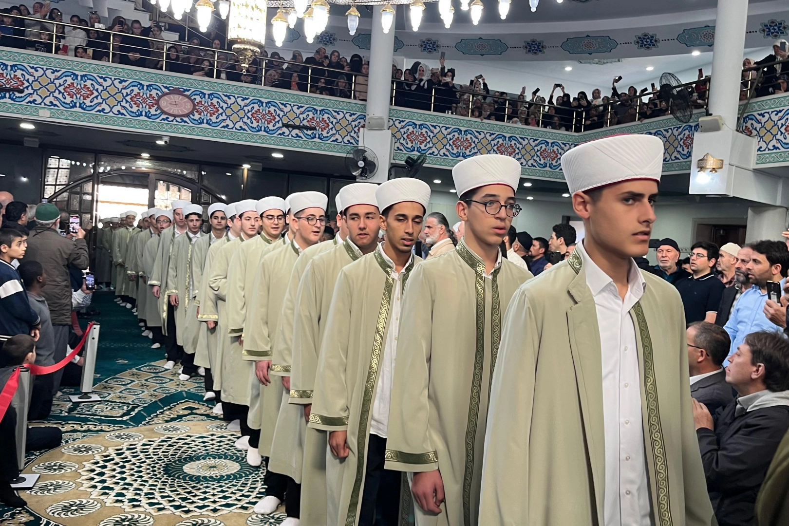 Açılış konuşmalarının ardından tekbirler eşliğinde davetlilerin huzuruna çıkan 60 öğrenci icazet aldı.