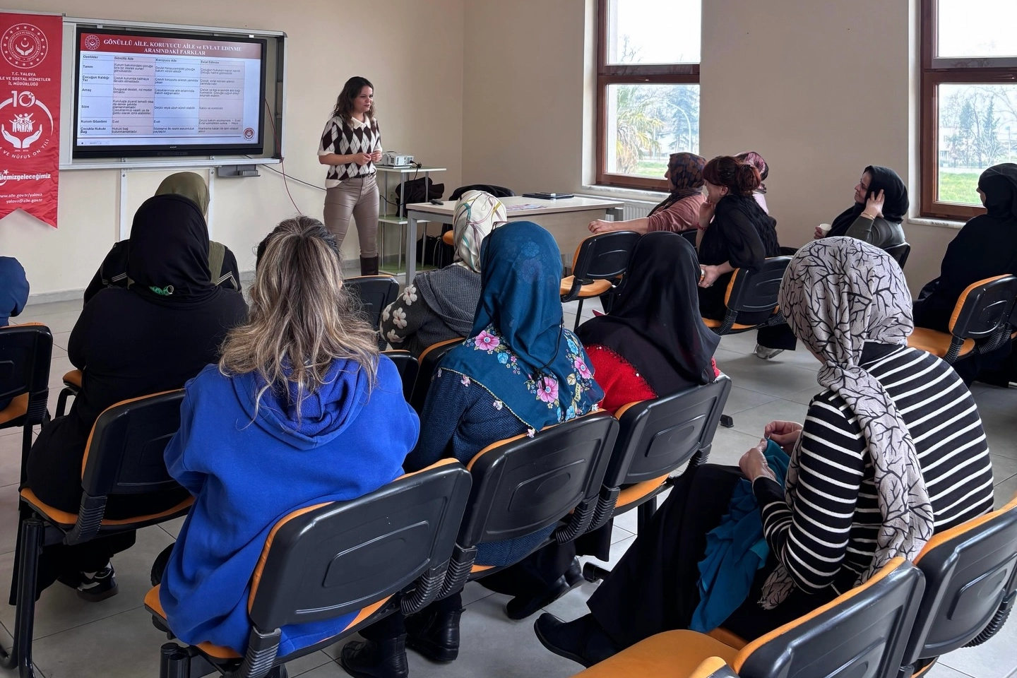 Yalova Aile ve Sosyal Hizmetler İl Müdürlüğü, toplumun temel taşı olan aile yapısını güçlendirmek ve devlet koruması altındaki çocuklara sıcak bir yuva imkanı sunmak amacıyla bilgilendirme faaliyetlerini sürdürüyor. Bu kapsamda, Aile Destek Merkezi (ADEM) kursiyerlerine yönelik "Koruyucu Aile Hizmeti Tanıtım Programı" düzenlendi. Koruyucu Aile Birimi’nde görev yapan sosyal çalışmacı Ceren Karataş tarafından gerçekleştirilen sunumda, sistemin işleyişi, başvuru şartları ve devletin sağladığı destekler detaylı bir şekilde paylaşıldı. Kursiyerlerin yoğun ilgi gösterdiği programda, bir çocuğun hayatına dokunmanın toplumsal huzura katkısı örneklerle anlatıldı. Eğitimde koruyucu ailelik mekanizmasının hukuki ve sosyal boyutlarına değinen Ceren Karataş, "Koruyucu ailelik, çeşitli nedenlerle öz ailesi yanında bakımı sağlanamayan çocuklarımızın eğitim, bakım ve yetiştirilme sorumluluğunun kısa veya uzun süreli olarak, devlet denetiminde gönüllü aileler tarafından üstlenilmesidir. Bu mekanizma sadece bir barınma hizmeti değil, çocuğun aile ortamında sevgi ve güvenle büyümesini sağlayan profesyonel bir sosyal hizmet modelidir. Amacımız, çocuklarımızın örselenen dünyalarını aile sıcaklığıyla onarmak ve onlara toplumda ayakları yere sağlam basan bireyler olma şansı tanımaktır. Bir çocuğun hayatındaki boşluğu doldurmak, aslında toplumun geleceğine yatırım yapmaktır" dedi.