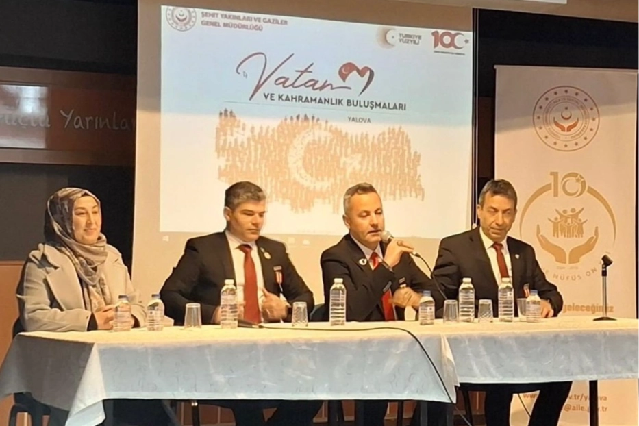 Aile ve Sosyal Hizmetler Bakanlığı ile şehit ve gazi dernekleri iş birliğinde yürütülen “Vatan ve Kahramanlık Buluşmaları” projesi, Yalova’da genç kuşaklarla kahraman gazileri buluşturmaya devam ediyor. Bu kapsamda organize edilen etkinliklerin son durağı, Yalova Fen Lisesi oldu. Okulda düzenlenen programa Malul Gazimiz Özcan İla, Malul Gazimiz Sadullah Efe, Vazife Malulü Hacı Eroğlu ve Şehit Nisani Ceran’ın kızı Meryem Batur katılarak öğrencilerle bir araya geldi. Duygu dolu anların yaşandığı etkinlikte gaziler, zorlu görev koşullarında yaşadıkları tecrübeleri ve kahramanlık hikayelerini gençlerle paylaştı. Vatan sevgisi, fedakârlık ve birlik ruhunun öneminin vurgulandığı buluşmada, öğrenciler merak ettikleri soruları gazilere yönelterek yanıtlarını birinci ağızdan dinledi.