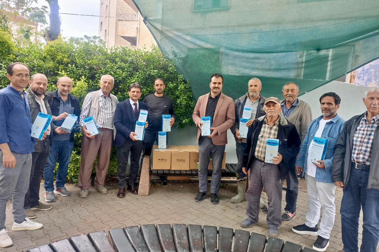 Teknik personeller ise mavi yapışkan tuzakların nasıl kullanılacağı konusunda üreticilere uygulamalı eğitim verdi.