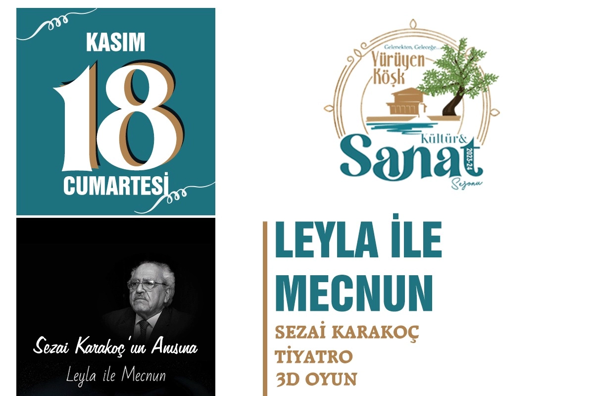 Yetişkinler için düzenlenecek tiyatro gösterisi, Sezai Karakoç’un anısına Hakan Güneri yönetmenliğinde sahnelenecek olan ‘Leyla ile Mecnun’ isimli tiyatro gösterisi olacak. Tiyatro severler, gösteriyi 3D olarak izleyecek. Raif Dinçkök Kültür Merkezi’nde sahnelenecek gösteri saat 20.00’da başlayacak.