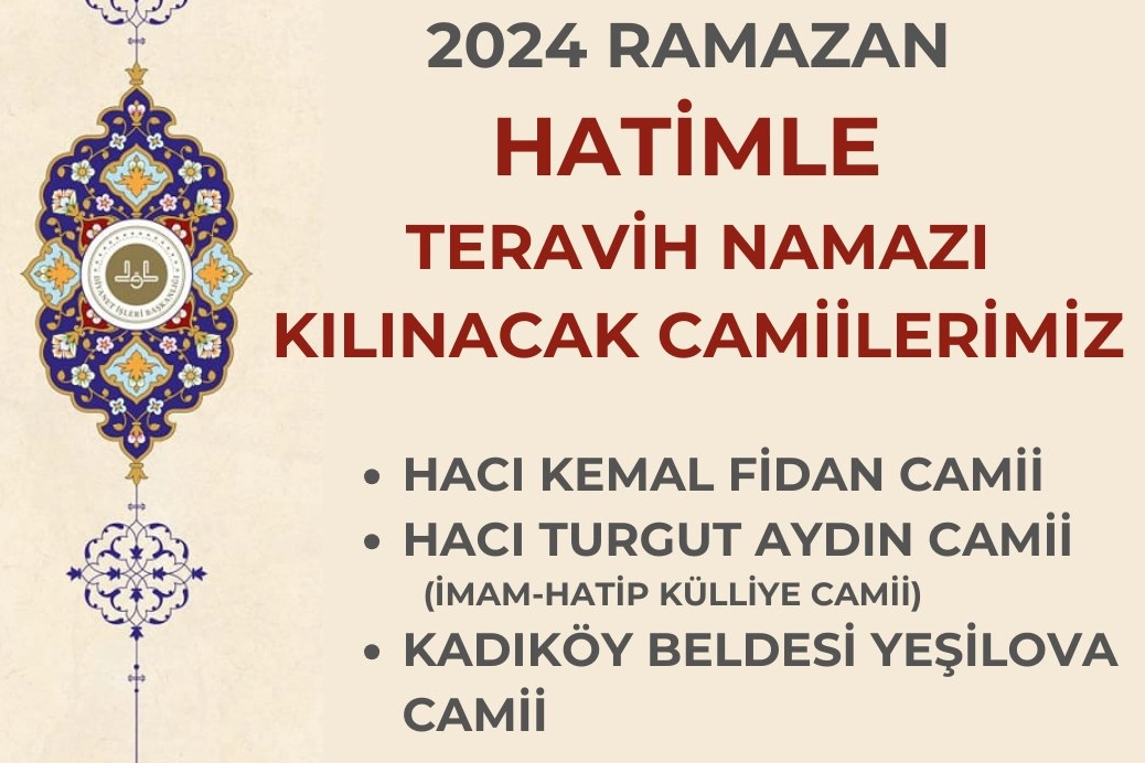 Müslümanlar için büyük öneme sahip üç ayların son ayı olan Ramazan'ın ikinci teravih namazı bu akşam eda edilecek.Teravih namazı 11 Mart Pazartesi günü, yatsı namazını müteakiben camilerde kılındı. Hatimle teravih namazı kılmak isteyenler için ise beklenen haber geldi.Yalova Müftülüğü tarafından Yalova’da hatimle teravih namazı kılınacak camiler açıklandı.Ramazan ayı boyunca Hacı Kemal Fidan Camii, Hacı Turgut Aydın Camii, Kadıköy Beldesi Yeşilova Camii’nde hatimle teravi namazı kılınacak.