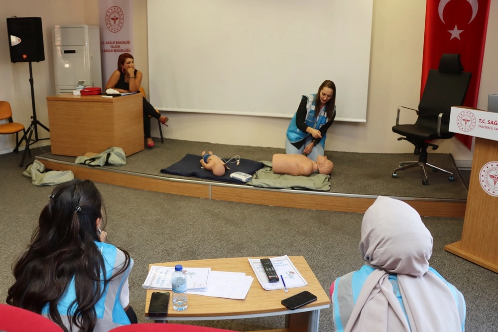 Yalova İl Sağlık Müdürlüğü’nün temel ilk yardım eğitmenleri Dilek Gilik ve Cafer Ünlü tarafından verilen eğitimlerde Kadın ve Aile Hizmetleri Müdürlüğü personellerine oluşabilecek bir kaza anında yapılacak olan müdahaleler uygulamalı olarak anlatılıyor. Temel ilk yardım eğitimini iki grup halinde uygulamalı olarak eğitim alan personellere ardından yazılı sınav yapılacak. Yapılacak olan sınavın ardından başarılı olan personellere sertifika verilecek.