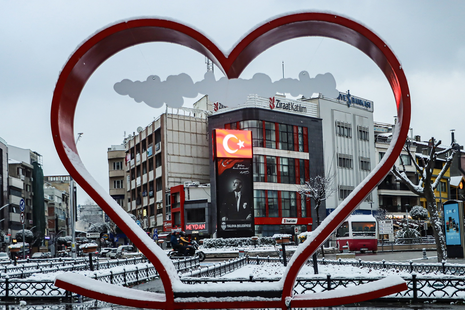 Karla kaplanmış parklar, sokaklar ve yapılar, Yalova’nın sadece yaz aylarında değil, kış mevsiminde de ne kadar eşsiz bir yer olduğunu bir kez daha gözler önüne serdi.