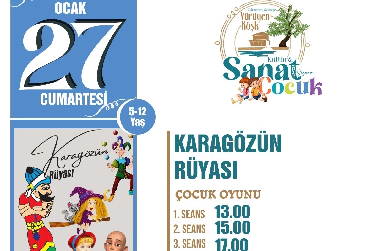 Her Cumartesi günü olduğu gibi Yalova Belediyesi tarafından gerçekleştirilen çocuk oyunları bu hafta ‘Karagözün Rüyası’ isimli tiyatro ile devam edecek. ‘Karagözün Rüyası’ isimli tiyatro oyunu 13:00:15:00 ve 17:00 saatlerinde 3 seans olarak Yalova Çocuk Tiyatrosu’nda sahnelenecek.
