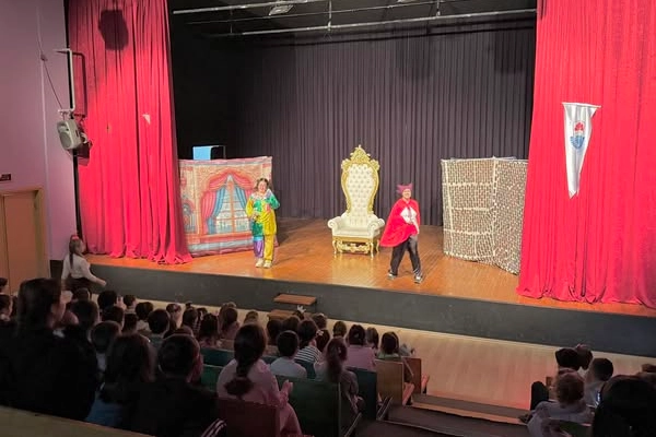 Oyun boyunca minik izleyiciler, sahnedeki renkli karakterlere ve eğlenceli hikayeye büyük ilgi gösterdi.