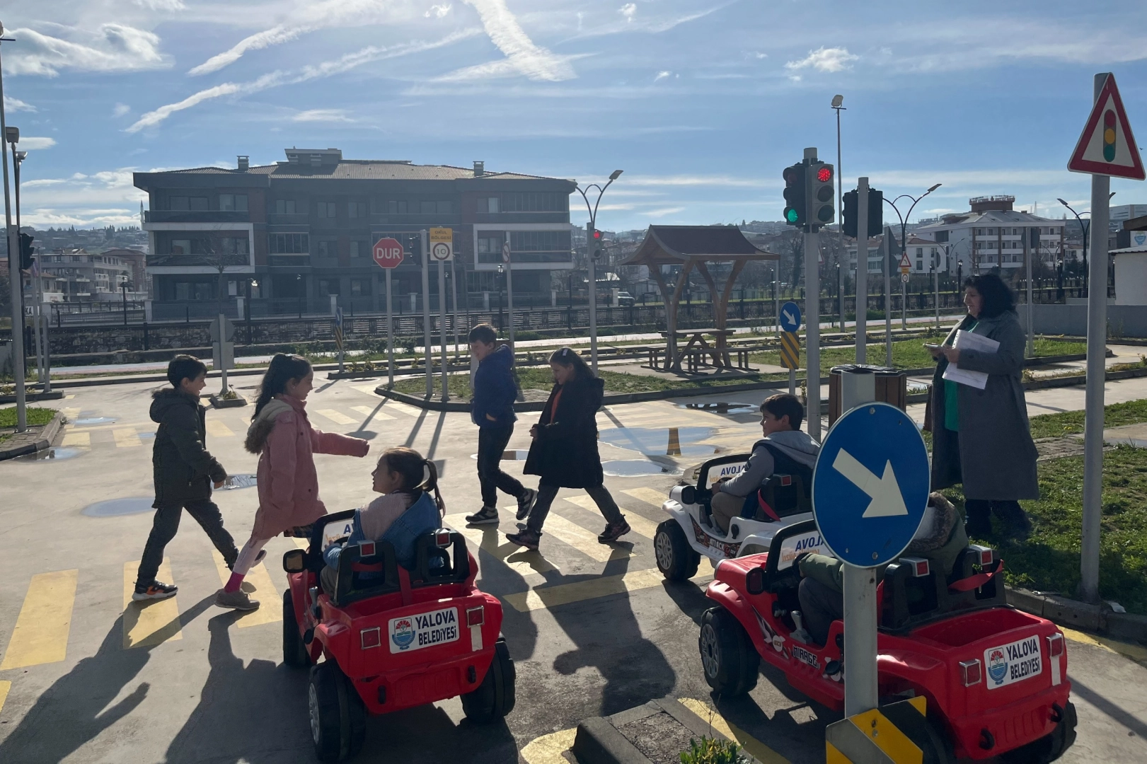 Öğrencilere yönelik trafik eğitimleri, Yalova İl Milli Eğitim Müdürlüğü ve Yalova Belediye Başkanlığı koordinesinde Volkan Taşgın Trafik Eğitim Parkı’nda Çiftlikköy Taşköprü İlkokulu ve Sultaniye Şehit Bacerettin Özgür İlkokulu öğrencileri için gerçekleştirildi.
