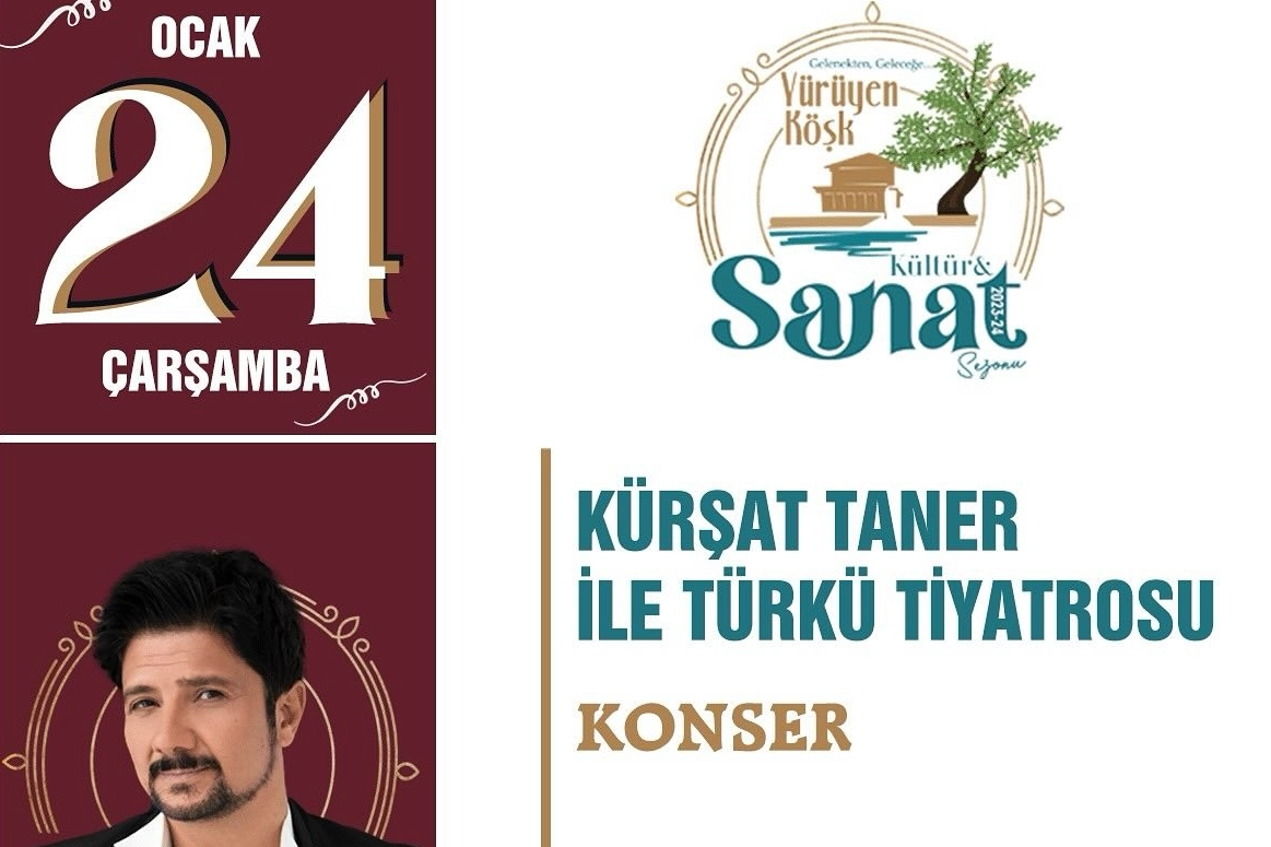 ‘Yürüyen Köşk Kültür Sanat Sezonu’ programları kapsamında şarkıcı, solist, oyuncu, sunucu ve aynı zamanda televizyon programlarından tanınan Kürşat Taner Yalovalılar için sahne alacak. ‘Kürşat Taner İle Türkü Tiyatrosu’ isimli programla Yalovalılara türkü ziyafeti verecek olan Taner’in programı 24 Ocak Çarşamba günü Raif Dinçkök Kültür Merkezi’nde gerçekleştirilecek.