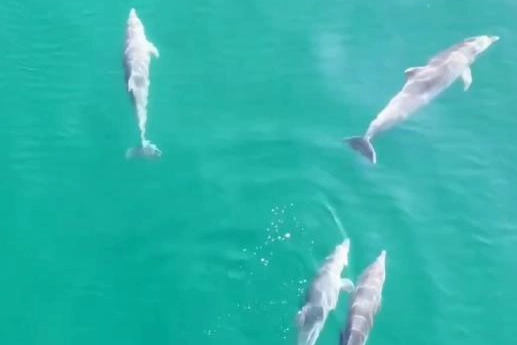 Esenköy beldesinde kıyıların ve açıklarında çok sıkılıkla görülen yunuslar bu kez dron ile kameralara kaydedildi. Denizde yunusları fark eden vatandaş dron kaldırarak yunusları takibe aldı. Görüntülerde 4 yunustan oluşan sürü deniz yüzeyinde görsel şölen sundu. Esenköy açıklarında bir süre dolaşan yunuslar daha sonra Marmara Denizi’nin iç kesimlerinde doğru yönelerek gözlerden kayboldu.