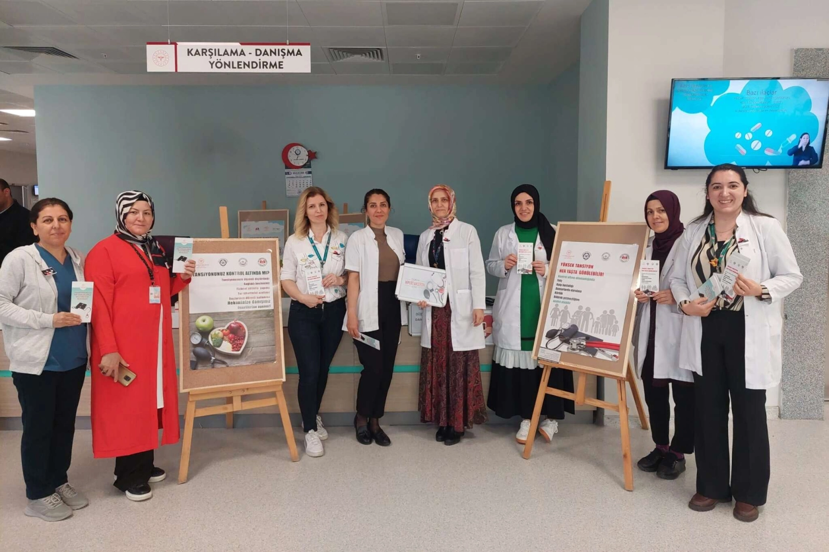 Hastanedeki polikliniklere başvuran hastalar ve hasta yakınlarına ücretsiz tansiyon ölçümü yapıldı. Ayrıca tansiyon ve tansiyondan korunma ile ilgili bilgilendirme ve broşür dağıtımı gerçekleştirildi.