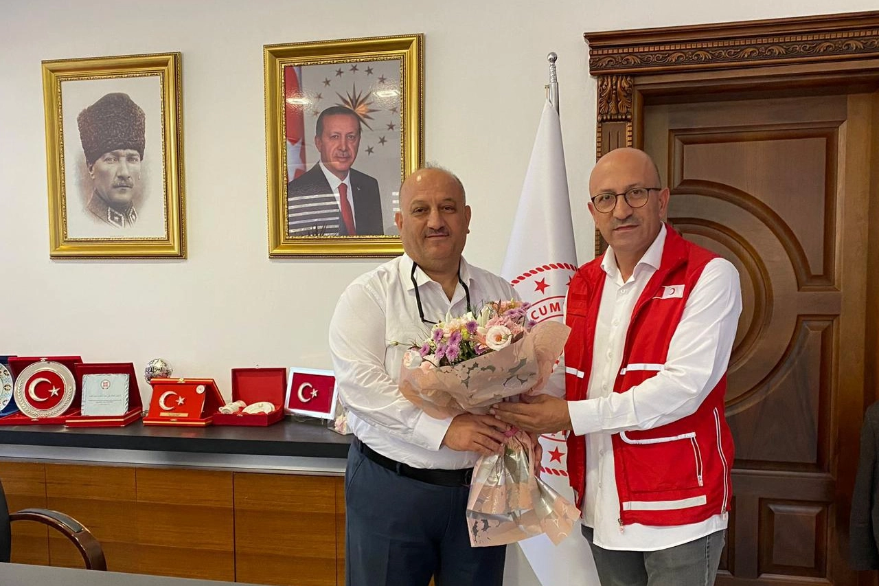 Türk Kızılayı Yalova Şube Başkanı Selvet Duman ve yönetim ekibi, Yalova İl Sağlık Müdürü Uzm. Dr. Osman Karakuş’u makamında ziyaret ederek, kendisine hayırlı olsun dileklerini iletti. Bir araya gelen ikili kurumlarda gerçekleştirilen sağlık çalışmaları hakkında karşılıklı sohbet ederek, fikir alışverişleri gerçekleştirdi ve güncel konular hakkında istişarelerde bulundu. Karakuş’a yeni görevinde başarılar dileyen ve hayırlı olsun dileklerini ileten Duman, misafirperverliği adına Karakuş’a teşekkürlerini sundu. Gerçekleşen ziyaret, hatıra fotoğrafı çekilmesi ile son bulurken Karakuş, Duman’a nazik ziyareti adına teşekkür etti.