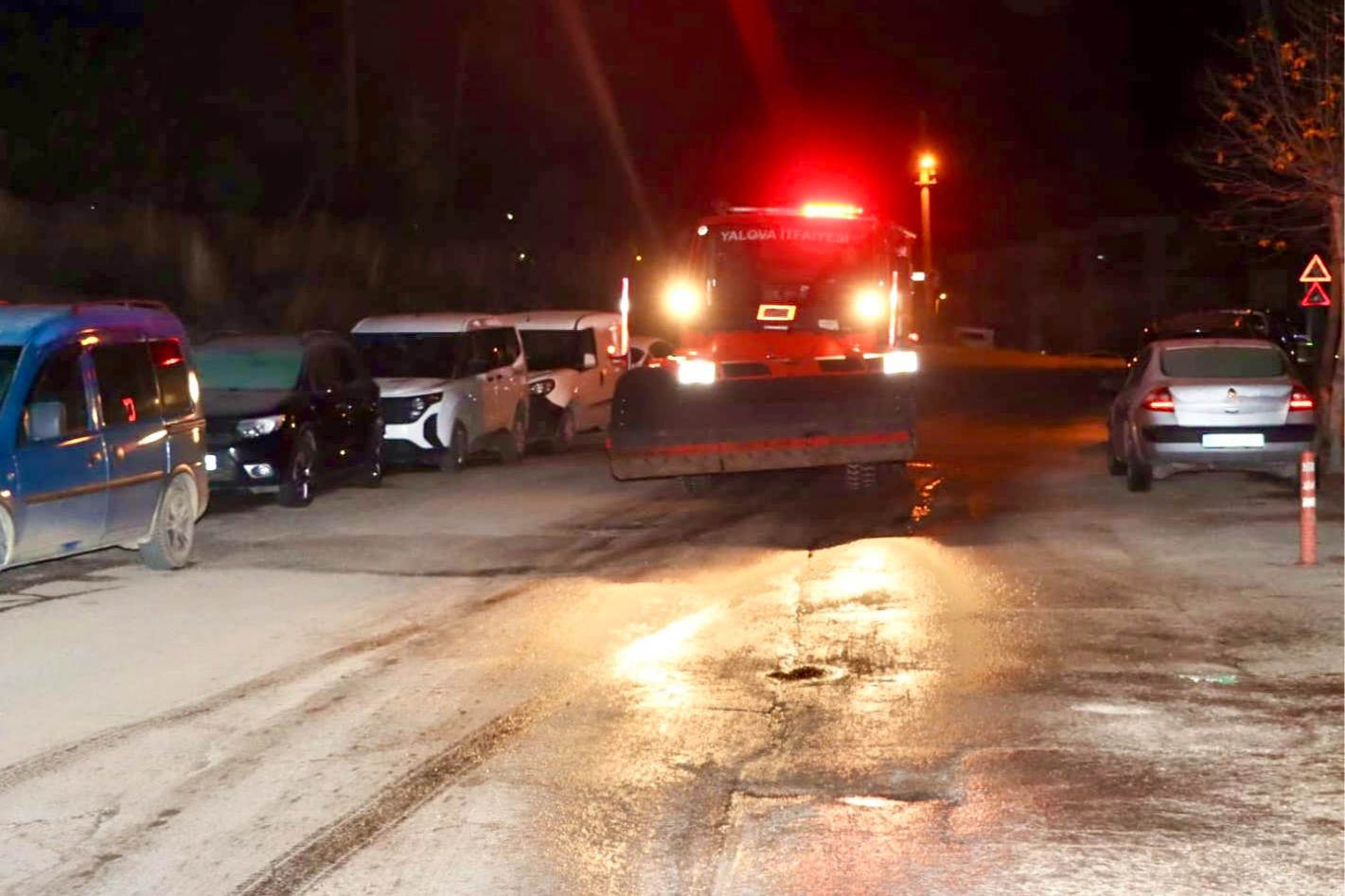 Yalova Belediyesi İtfaiye Müdürlüğü’ne bağlı ekipler, vatandaşların can ve mal güvenliğini sağlamak amacıyla geceyi teyakkuz halinde geçirdi. Ulaşımda aksamaların yaşanmaması adına önceden belirlenen kritik noktalarda konuşlanan ekipler, sabaha kadar yoğun bir mesai harcadı. Ekipler tarafından yollarda gerçekleştirilen tuzlama çalışmaları sayesinde buzlanmanın önüne geçildi.