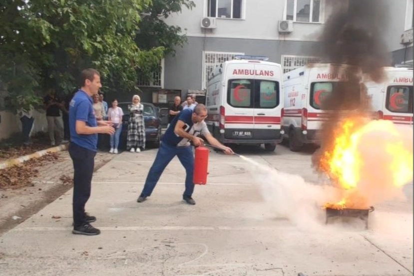 Yalova Belediyesi İtfaiye Ekipleri, merkez ilçe kapsamında sürdürdükleri eğitimlere aralıksız olarak devam ediyor. Gerçekleştirdikleri eğitimler sayesinde çok sayıda kişiye yangınlara karşı farkındalık kazandıran ekipler son olarak 112 çalışanlarına yönelik bir eğitim gerçekleştirdi. Eğitimler, yangınlara karşı farkındalığı artırmak ve acil durum müdahale becerilerini geliştirmek amacıyla büyük önem taşırken aynı zamanda da Yalova İtfaiyesi, bu eğitimlerle birlikte hem profesyonel hem de toplumsal bilinç seviyesini yükseltmeyi hedefliyor. Uygulamalı eğitimlerim içeriğinde ise yangına müdahale konusunda önem taşıyan yangın söndürme eğitimleri veriliyor.