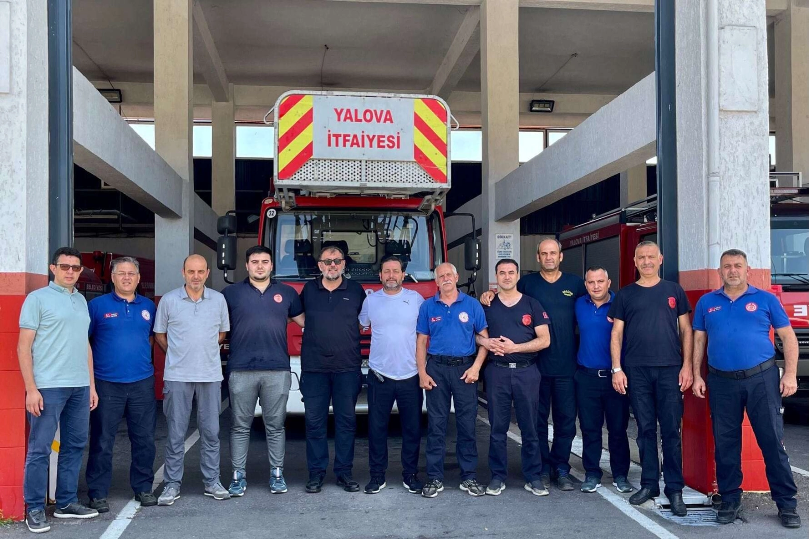 Konya İtfaiye Daire Başkanı Cevdet İşbitirici ve amirleri, Yalova İtfaiye Müdürü Ergül Orakçı ve itfaiye personelleri ile birlikte bir hatıra fotoğrafı da çektirdi.
