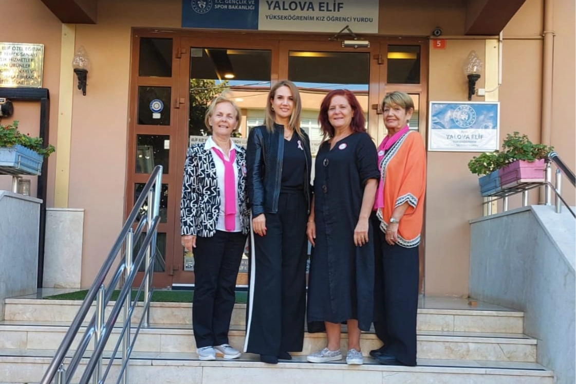 Yalova Kanser Hastaları Derneği, 1-31 Ekim Meme Kanseri Farkındalık Ayı sebebiyle ‘Pembe Buluşma’ etkinliğine Yalova için çalışmalar yapan Yalova Belediye Başkanı’nın eşi iş insanı Gökşen Tutuk’u ziyaret ederek davet etti. Ziyarette bulunan Yalova Kanser Hastaları Derneği yetkilileri Tutuk’a pembe kurdele taktı.