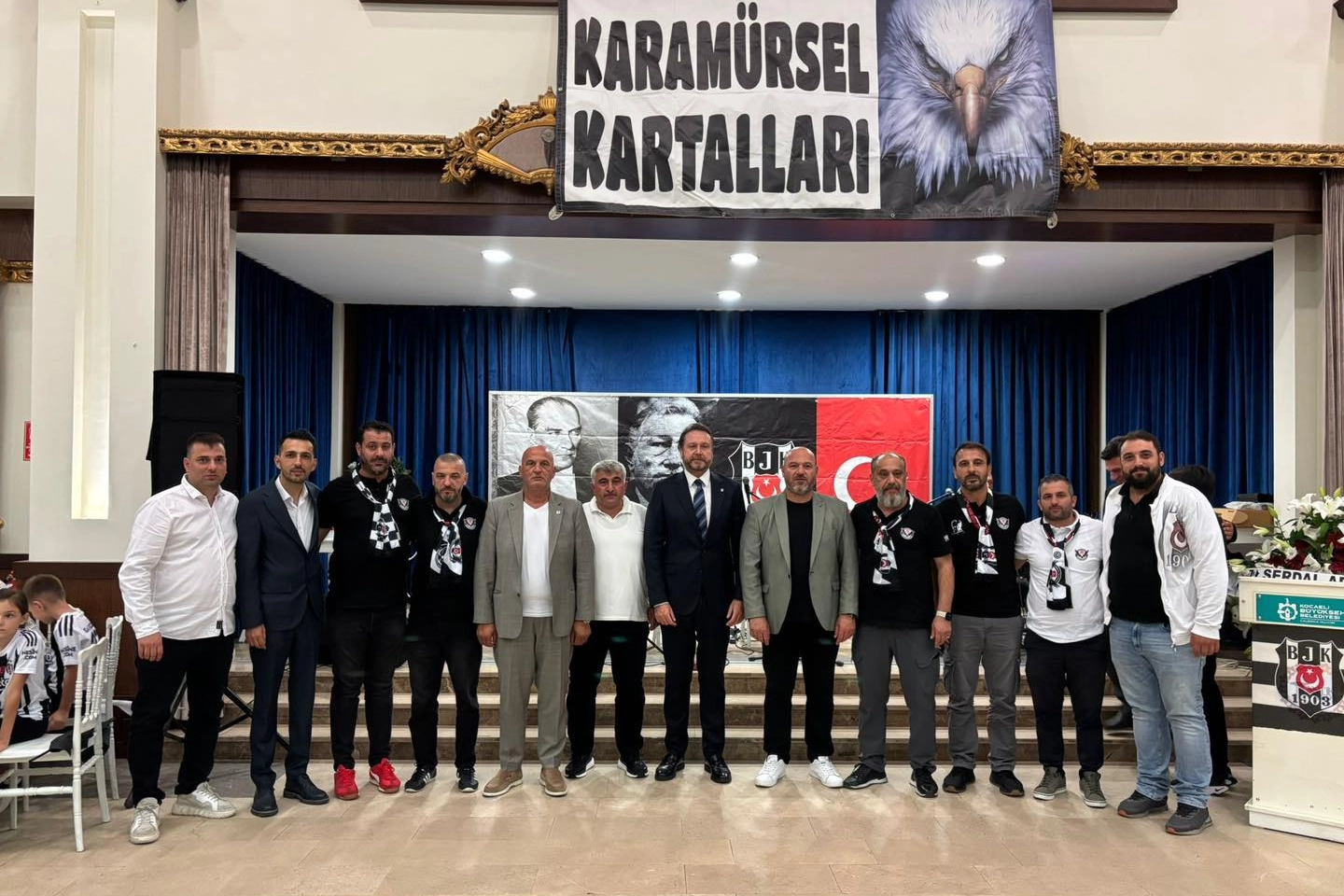 Yalova Kartalları Taraftarlar Derneği, Karamürsel Beşiktaşlılar Derneği’nin organize ettiği özel geceye katılım gösterdi. Siyah-beyaz sevdalılarını bir araya getiren etkinlik, yoğun ilgi gördü. Geceye Beşiktaş Genel Sekreteri Uğur Fora ve Beşiktaş Koordinatörü Hüseyin Belenkoğlu da katıldı. Beşiktaş camiasının buluştuğu organizasyonda dostluk ve dayanışma mesajları verilirken, birlik beraberliğin önemine vurgu yapıldı. Yalova Kartalları Taraftarlar Derneği yöneticileri, gösterilen misafirperverlik için Karamürsel Beşiktaşlılar Derneği’ne teşekkür ederek, Beşiktaş’a gönül veren taraftarların her zaman dayanışma içinde olduklarını ifade etti.