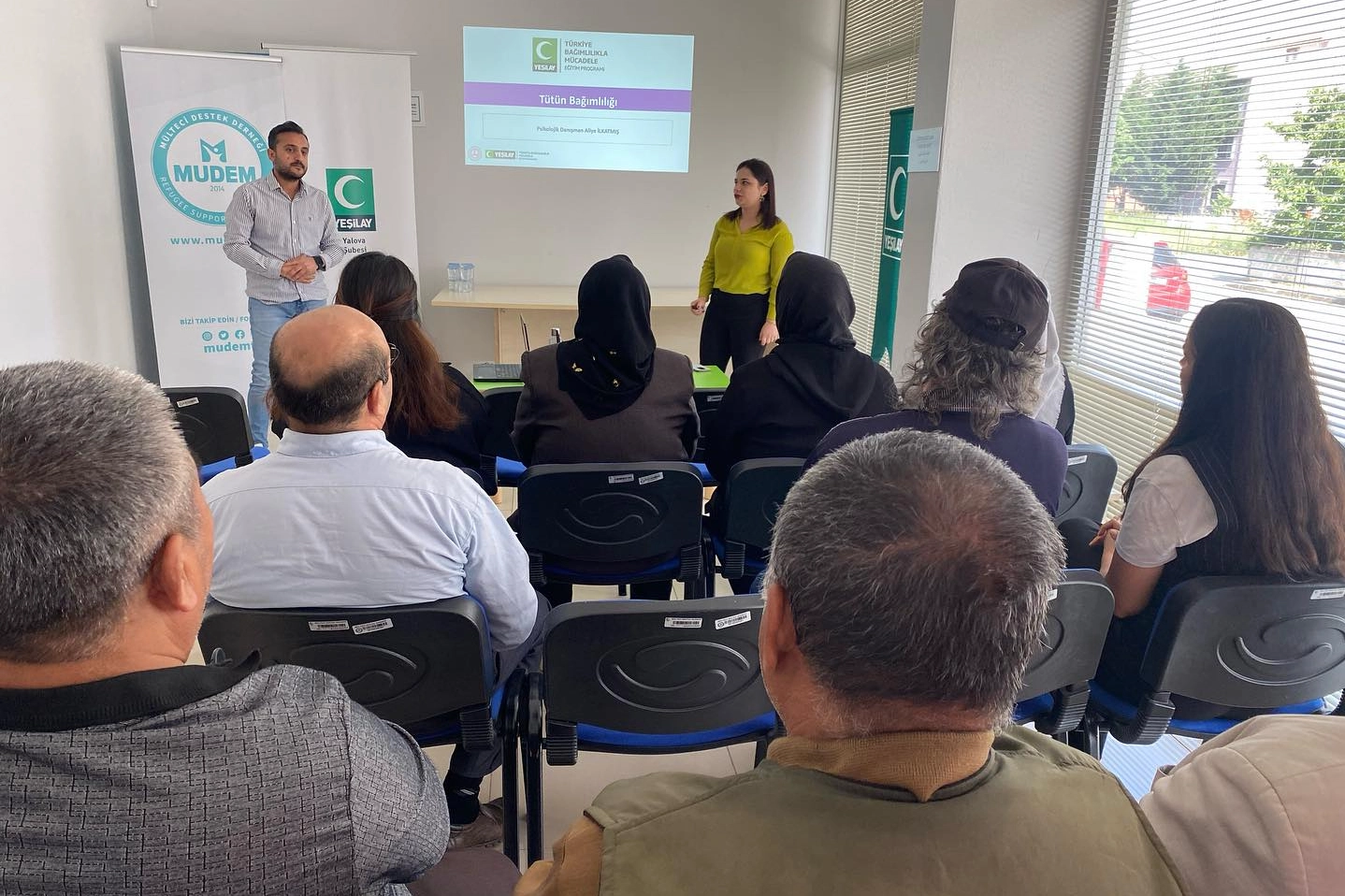 Yalova’da MUDEM Danışanlarına Türkiye Bağımlılıkla Mücadele programı kapsamında Tütün Bağımlılığı Eğitimi verildi. Eğitim Yalova Aile ve Sosyal Hizmetler İl Müdürlüğü’nde görevli Psikolojik Danışman Aliye İlkatmış tarafından gerçekleştirildi. Eğitimde çok sayıda katılımcı, yaşam kalitesini azaltan ve sağlık açısından büyük risk faktörleri taşıyan tütün ürünlerine karşı bağımlılıkla mücadele konusunda farkındalık kazandı.