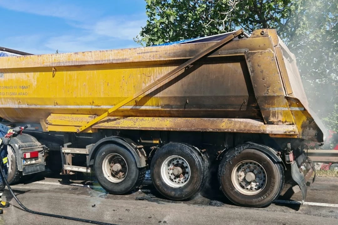 Kamyonun balata kısmında başlayan yangın, kısa sürede lastiklere sıçradı. Lastiklerin yanmaya başladığını fark eden diğer sürücü, aracının yol kenarına çekerek 112 Acil Çağrı Merkezine ihbarda bulundu.