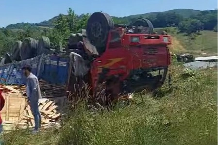Kamyonda yüklü odunlar yola savruldu. Kamyonun şoförü ters dönen aracın içerisinde sıkıştı. Kazayı gören diğer sürücüler yardıma koşarak araçta sıkışan sürücüyü kurtardı. İhbar üzerine olay yerine çok sayıda sağlık ve jandarma ekibi sevk edildi. Hastaneye kaldırılarak tedavi altına alınan sürücünün hayati tehlikesinin bulunmadığı öğrenildi. Kazayla ilgili inceleme başlatıldı.