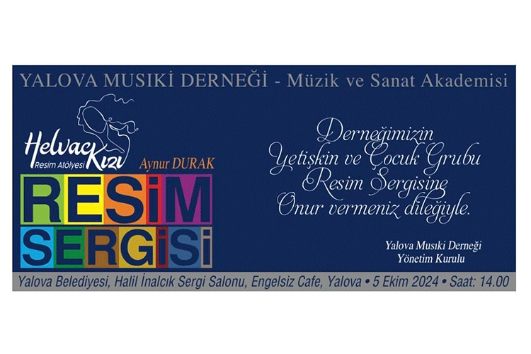 Sergi, 5 Ekim Cumartesi günü saat: 14.00’da Halil İnalcık Sergi Salonu’nda (Yalova Merkez Engelsiz Cafe PTT karşı) gerçekleştirilecek. Dernek tarafından yapılan açıklamada, düzenlenen sergiye tüm sanatseverlerin davetli olduğu duyuruldu.
