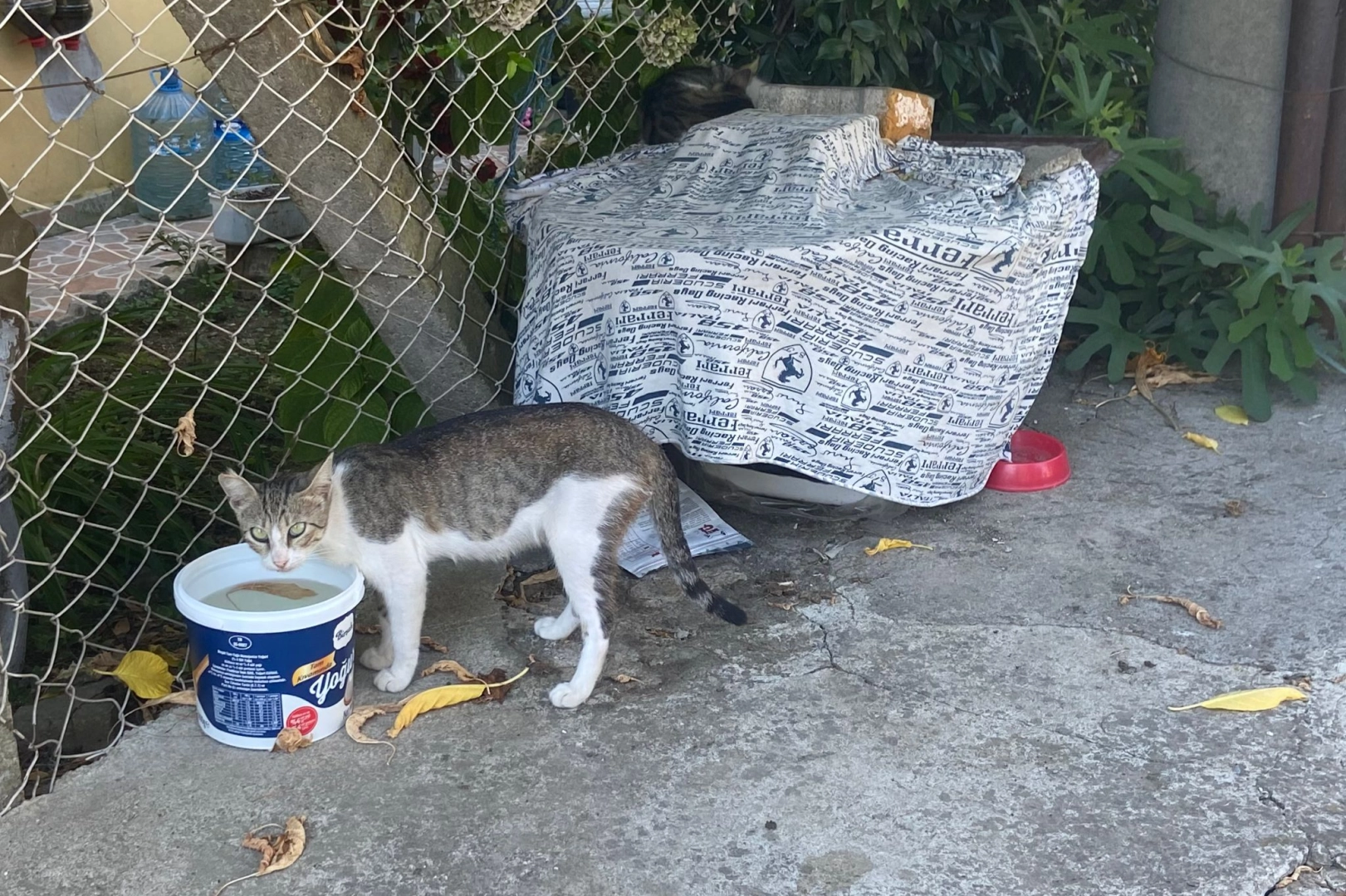 Sıcak günlerde sokak hayvanlarının suya, mamaya ve barınma alanına erişimlerinin zorlaştığını düşünen bu duyarlı vatandaş, kedi evini ihtiyaç duyabilecek hayvanlar için sokağa yerleştirdi. Küçük kedi evi, içinde su ve mama kaplarıyla birlikte, sıcak havadan korunabilecekleri bir barınma alanı sunuyor.