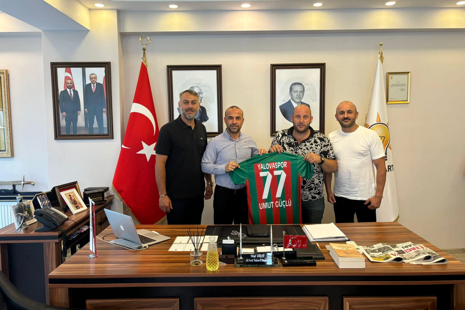 AK Parti Yalova İl Başkanı Umut Güçlü ile Yalovaspor’un gelecek sezon planlaması ve hedefleri hakkında muhabbet gerçekleştiren, Yalovaspor Başkanı Ali Yavru, Başkan Güçlü’ye misafirperverliği ve hoş sohbeti adına teşekkür etti. Ziyaret toplu hatıra fotoğrafının çekilmesinin ardından sona ererken, Başkan Güçlü, “Yalovaspor Başkanı Ali Yavru başkanlığımızı ziyaret etti. Yeni seçilen yönetime ve bu sezon Bölgesel Amatör Lig’de mücadele edecek olan Yalovaspor’umuza kolaylıklar ve başarılar dileriz” ifadelerine yer verdi.