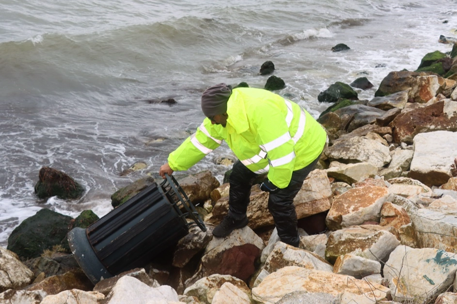 Doğu Sahil Bandında meydana gelen olayın akabinde Yalova Belediyesi ekipleri tarafından yerlerinden sökülen çöp kutuları ve banklar atıldıkları yerden alınarak yerlerine konuldu.