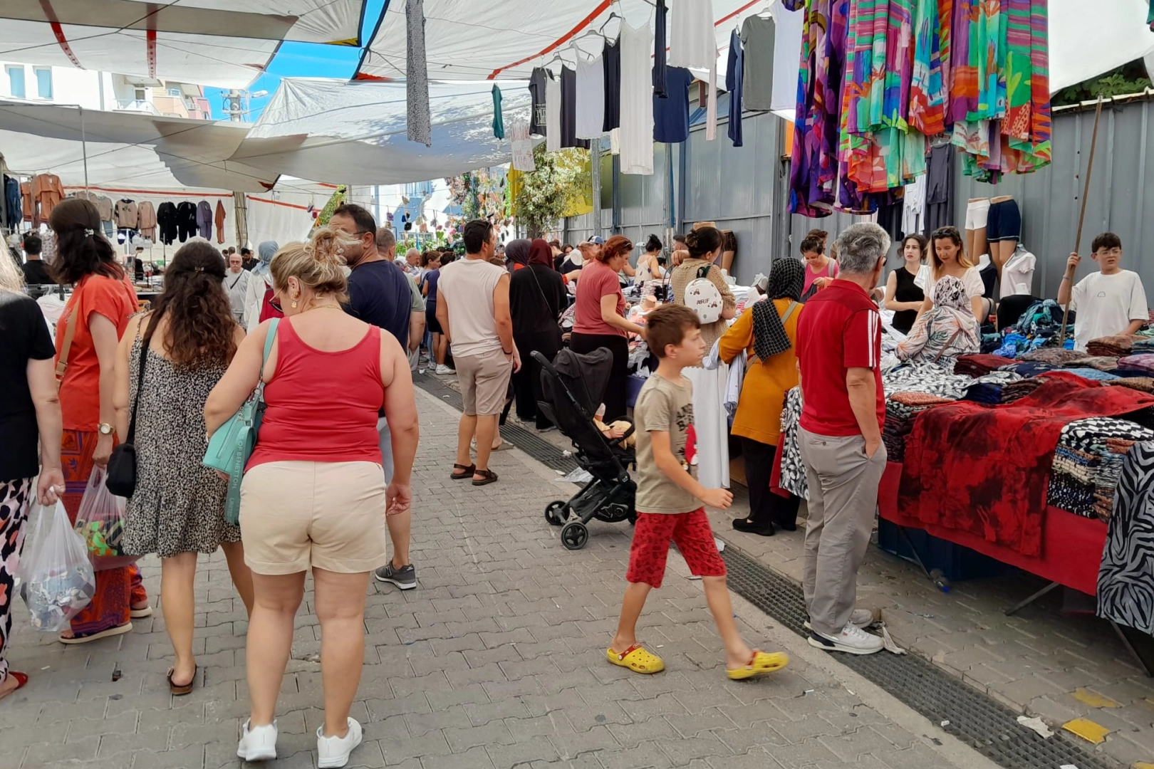 Hava sıcaklıklarının devam etmesiyle birlikte dışarıdan tatilcilerin de geldiği Yalova’da dışarıdaki birçok yere göre Sosyete Pazarı da kalabalıklığını sürdürüyor. Havaların sıcak gitmesiyle beraber tatilci sayısının da arttığı pazar, yazlık ürünlerin kapış kapış gitmesiyle dikkat çekti. Oldukça yoğun bir gün ile başlayan Sosyete Pazarı’nda yazlık kıyafetler için sıraya girildi. Genellikle kadın tüketicilerin ilgi gösterdiği pazarda kıyafetleri görmek isteyen müşteriler adeta sıra oluşturdu. Yazlık ürünlere büyük bir rağbetin gösterildiği pazarda yoğunluk nedeniyle yürümekte zor anlar yaşandı. Sadece Çiftlikköy sakinlerinin ziyaret etmediği pazara Merkez ve diğer birçok ilçeden vatandaşların da geldiği görüldü.