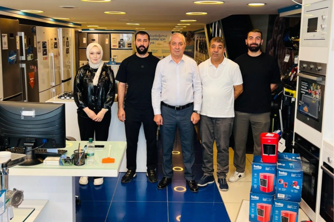 YTSO Yönetim Kurulu Başkanı Cemil Demiryürek, Yalova Şahinler Ticaret BEKO Konsept Mağazası’nı ziyaret ederek firma yetkilileri Müştak Şahin ve Selahattin Şahin ile bir araya geldi. Gerçekleştirilen ziyarette sektörel gelişmeler, perakende sektörünün yerel pazardaki durumu ve iş dünyasının karşılaştığı güncel dinamikler üzerine değerlendirmelerde bulunuldu. Cemil Demiryürek, burada firma faaliyetleri hakkında yetkililerden bilgi alarak, “YTSO olarak üyelerimizin yanında olmaya, onların taleplerini ve önerilerini dinlemeye devam edeceğiz” ifadelerini kullandı. Firma yetkilileri de ziyaretten duydukları memnuniyeti dile getirerek, Demiryürek’e teşekkürlerini ilettiler. Ziyaret, günün anısına hatıra fotoğrafı çekilmesi ve karşılıklı olarak iyi dilek temennilerinde bulunulması ile birlikte sona erdi.