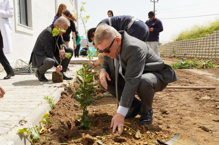 Armutlu’da bahar etkinliği kapsamında yaşlı bakım ve huzur evi bahçesinde fidan dikimi etkinliği düzenlendi.