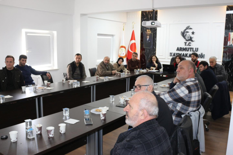 Armutlu İlçe Tarım ve Orman Müdürlüğü’nün organize ettiği eğitimde, Atatürk Bahçe Kültürleri Merkez Araştırma Enstitüsü’nden Dr. Mehmet Emin Akçay, Ziraat Yüksek Mühendisi Fatih Gökhan Erbaş, Ziraat Yüksek Mühendisi Ömer Faruk Bora tarafından zeytin ve çilek yetiştiriciliği için bahçe kurulumu, bakım, hastalıklar, budama gibi konularda bilgilendirmeler yapıldı.