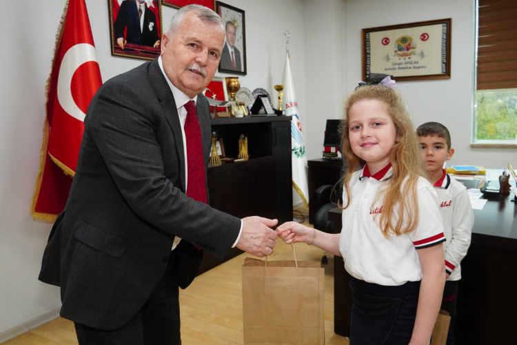 15 Temmuz İstiklal İlkokulu 3. Sınıf öğrencileri, 23 Nisan Ulusal Egemenlik ve Çocuk Bayramı vesilesiyle Armutlu Belediye Başkanı Cengiz Arslan’ı makamında ziyaret ederek bayram sevincini paylaştı.