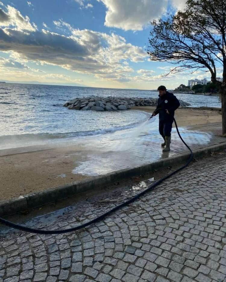 Armutlu Belediyesi Fen İşleri Müdürlüğüne ve Temizlik Hizmetleri Birimine bağlı ekipler olumsuz hava şartlarından dolayı tüm ilçe genelinde temizlik işlerine devam ediyor. Ekipler, özellikle şiddetli yağış ve fırtına sonrasında kirlenen Dereağzı Sahili’ni ve yollarını koordineli biçimde temizliyorlar.