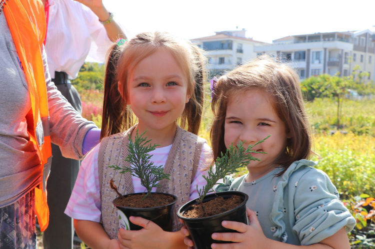 Bahçeşehirli minikler Çiftlikköy’de ilk fidanlarını dikti