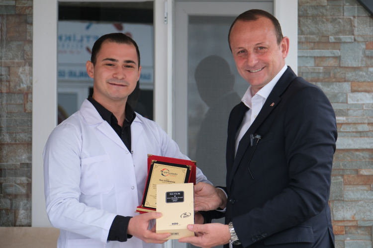 Başkan Yele, Veteriner Hekim Berk Sürbahan'a plaket ve Nutuk hediye ederek, Dünya Veteriner Hekimler Günü'nü kutladı.