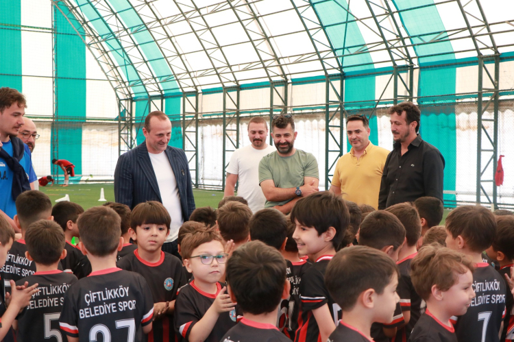 Çiftlikköy Belediyespor Futbol Akademisi’ni ziyaret eden Çiftlikköy Belediye Başkanı Adil Yele, futbola yeni başlayan 5 ve 6 yaşındaki minik kramponlarla bir araya geldi.