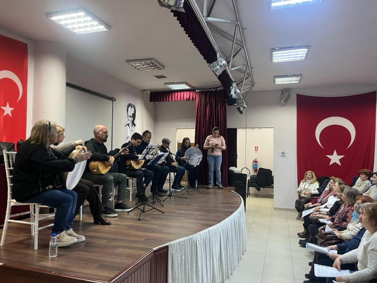 Koro şefi ve kurs öğretmeni Tansu Can’ın nezaretinde Çiftlikköy Belediyesi Kültür Merkezi’nde haftalık çalışmalarını sürdüren Türk Halk Müziği korosu üyelerinin performanslarını Çiftlikköy Belediyesi Kültür İşleri Müdürü Ali İhsan Demirhan ile birlikte dinleyen Başkan Yele, kış sezonu sonunda yapılması planlanan bahar konseriyle ilgili de bilgiler aldı.